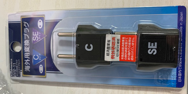 | 海外用変換プラグ(充電用) | 電源の差し込み口の形状は国によって違う。韓国の場合CかSEタイプがあればOK。![]() |