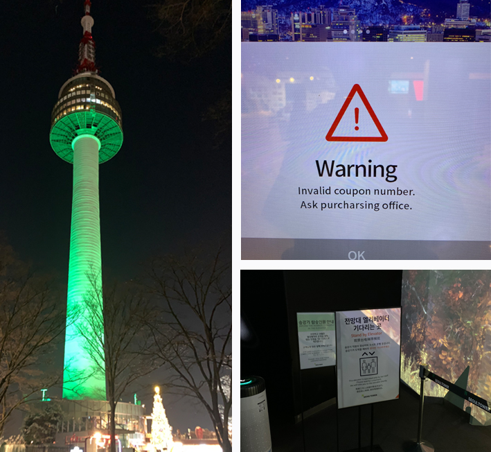 「ケーブルカーがソウルタワーエリアに到着したら、少し上へ歩きで上がっていくけど雪が少し積もってた。冬の韓国けっこう寒いから服装気をつけましょう。自動券売機はスマホでもできるか不明だがQRコードを印刷しといた方が良いと思う。展望台の帰り間違えて変なレストランに入ってしまって恥ずかしかったのでよくサインを見て外にでましょう。」